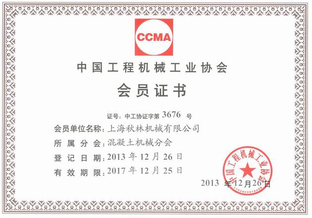 我司成功加入中國工程機械工業協會混凝土機械分會